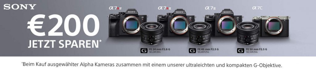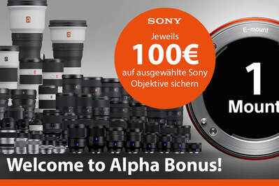 Kaufen Sie Ihre Sony Alpha Kamera und erhalten Sie nach dem Kauf neuen gekauften Objektiven jemeils 100,- Euro Cashback!